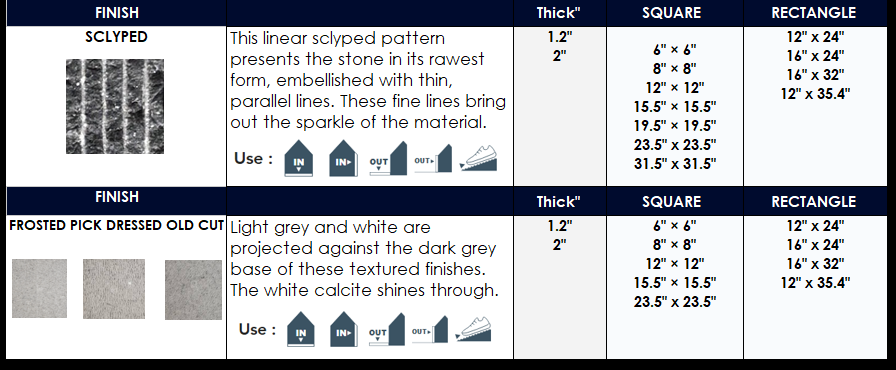 EXCLUSIVE RANGE OF FINISHES & sIZES